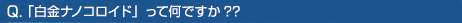 A.「白金ナノコロイド」は、白金の粒子を分散してコロイド液にしたものです。「プラチナウォーター」では、触媒能力を高めるため、純度の高い白金を特別に粒子加工しています。