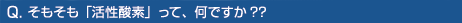 A. 「活性酸素」は、日常の呼吸から常に体内に発生しています。また、激しい運動や喫煙時にはより多くの活性酸素が発生します。さらに病原菌による感染症を除く病気の90%は、「活性酸素」が要因といわれています。この「活性酸素」は、細菌・カビ・ウイルスを退治する大切な役割を担っています。しかし「活性酸素」は増えすぎると、正常な細胞を攻撃して身体に悪影響を及ぼします。この余分な活性酸素を除去するのが「酵素」ですが、30才位から減少をはじめ、35〜40才にはほとんどなくなってしまいます。これが「身体がサビル」とよく言われている“老化現象”なのです。